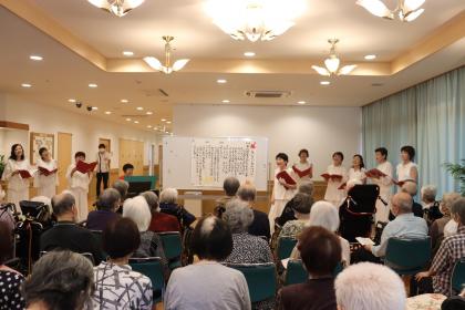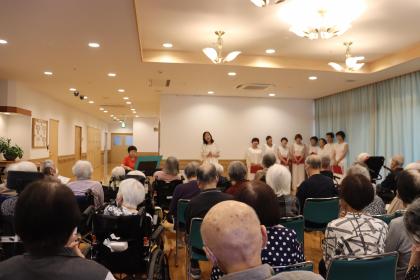 声を合わせてみんなで大合唱。歌でホールが一体化し、歌が皆様に笑顔を運んでくれました。