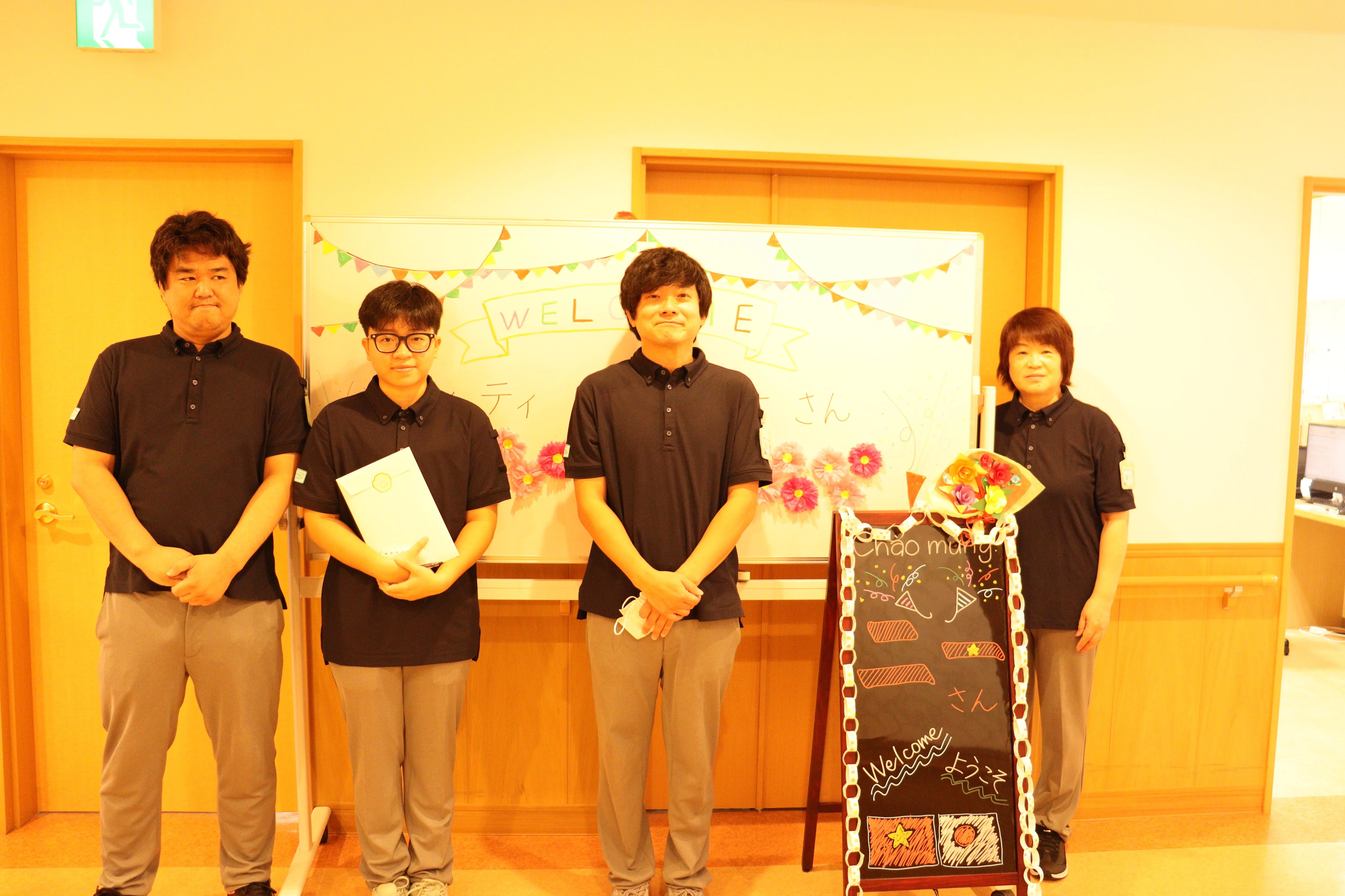 welcome!今日から一緒に働くことになった技能実習生です。ツクイや愛媛のことを好きになってもらうように、スタッフ一同フォローしていきます。よろしくお願いします。技能実習生より分からないことたくさんありますが、一生懸命がんばります。よろしくお願いします。
