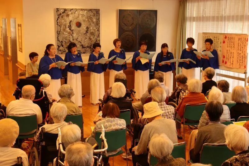 合唱団の「SAKAフェリーチェ」の皆さまが来てくれました。懐かしい歌を聴いたり、一緒に歌ったりと、楽しい時間を過ごしました。