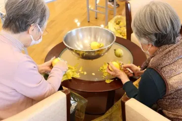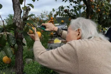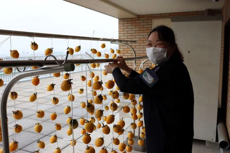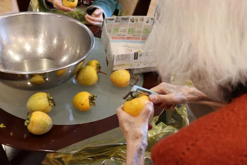「干し柿の季節ですね~」と話していたところ、施設内に柿の木を発見!!