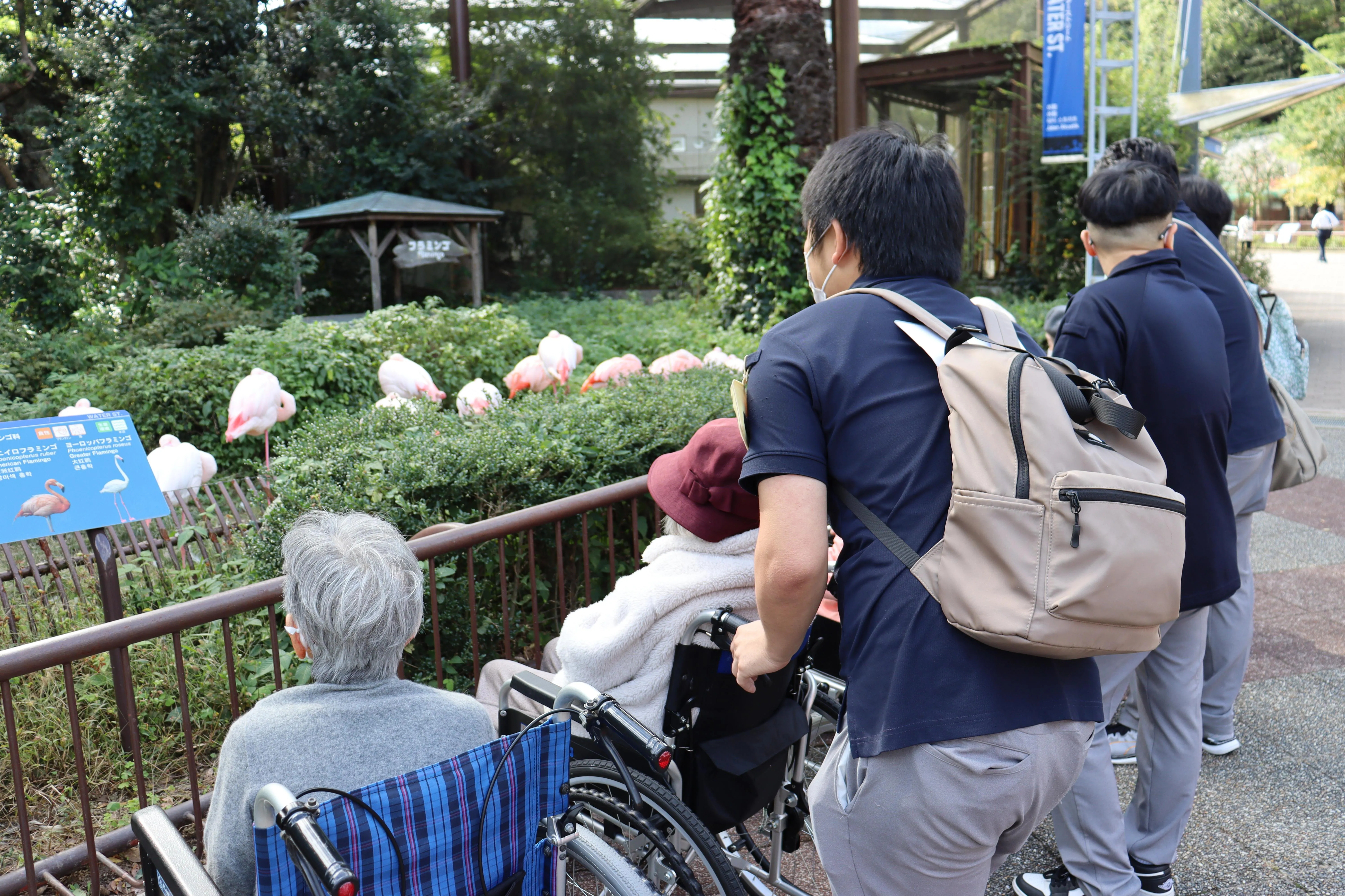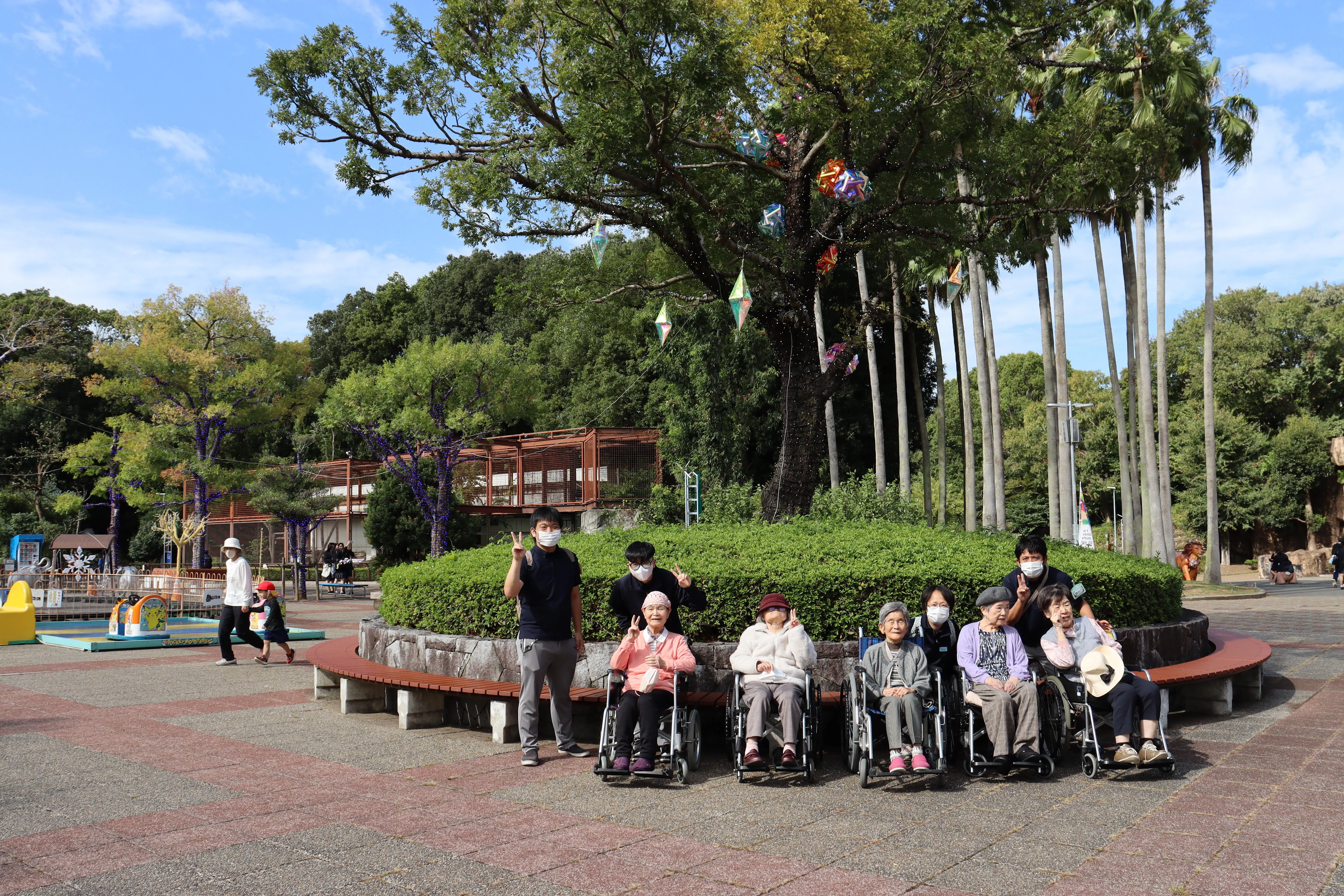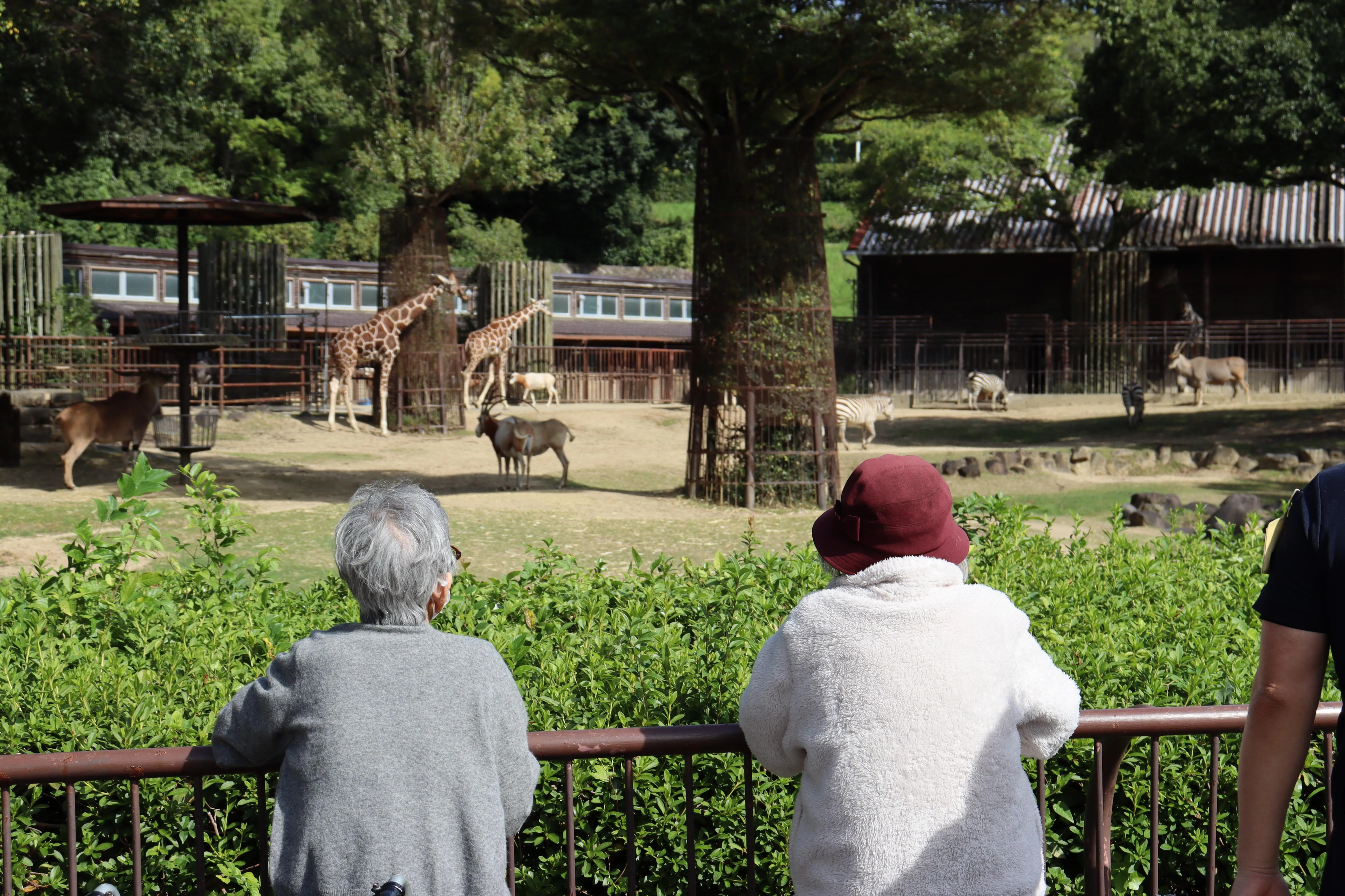この日は、幼稚園、保育園、中学生、高校生などの集団での参加の方もおり、にぎわいのある砥部動物園でした。ちなみに施設からは車で30分くらいの場所にあり、お客様にも負担の少ない環境にあります。