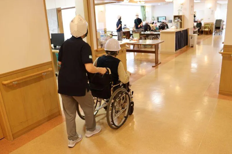 最終点呼を行い、安全に避難できたかを確認している様子です。