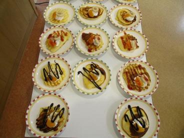 手作りのホットケーキと好みの飲み物と職員による寸劇に、にこやかな表情や時に大声での笑いがありました。