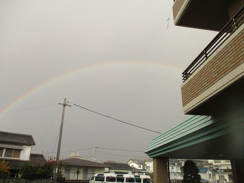 曇天で雨が一瞬ふったあとに、虹が出ていました。