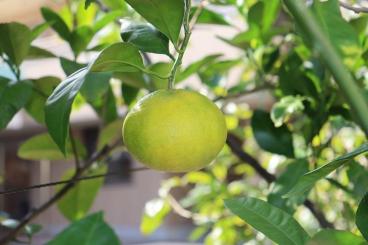 夏に剪定したせいで今年は実が成らないと思っていましたがこっそりと夏ミカンが育っていました。