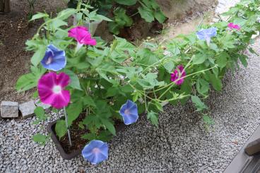 去年は小さい花をいくつか付けただけの朝顔でしたが、今年は毎日十数輪、多い日には30輪以上もの花を咲かせています。