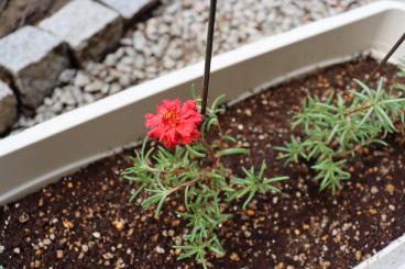 その隣ではついに、八重松葉牡丹も花を咲かせてくれました。(傾いていたので棒で支えています)