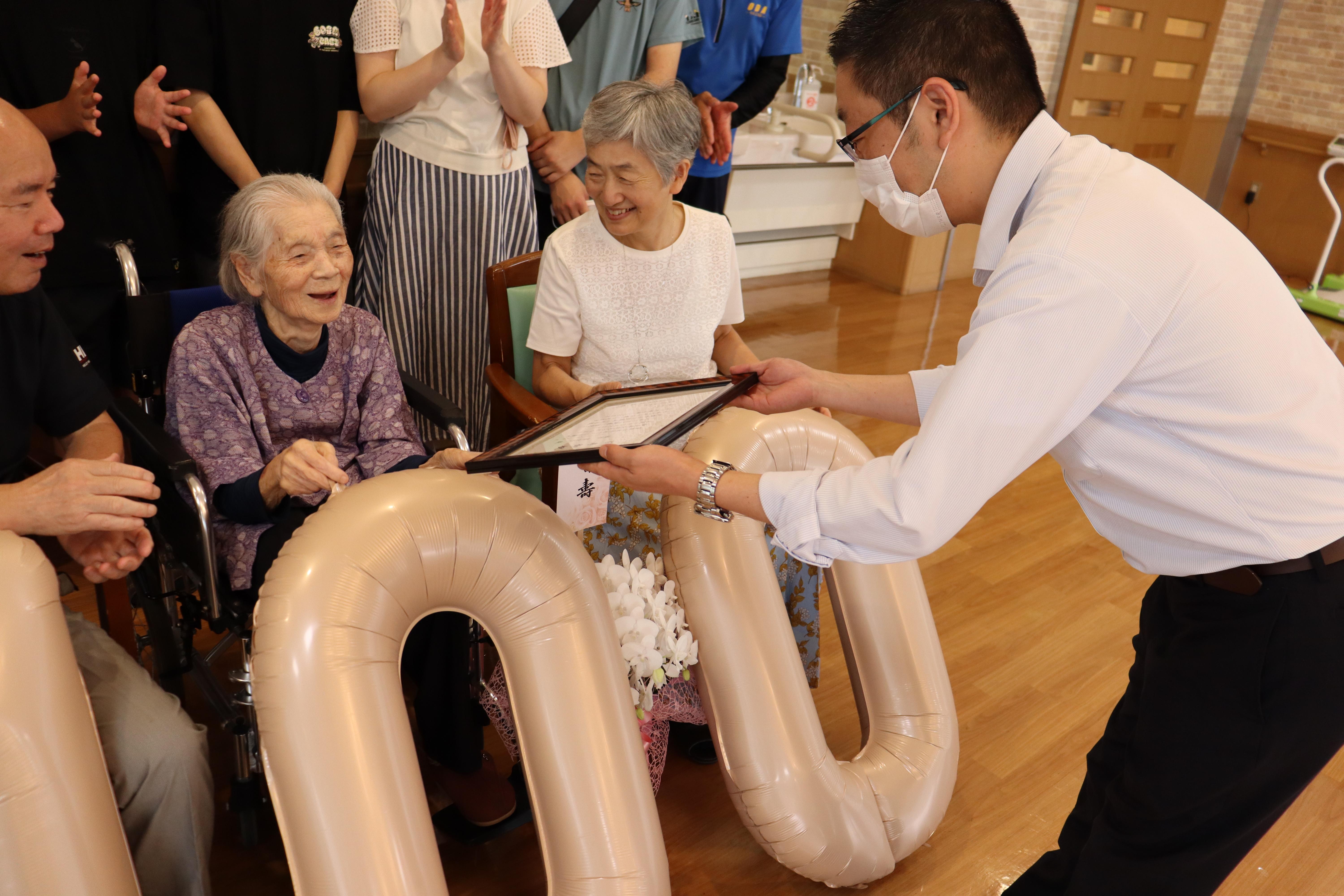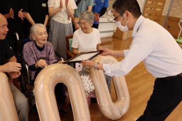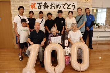 8月に100歳を迎えられるお客様に、ご親族の皆様が集まってお祝いされました。