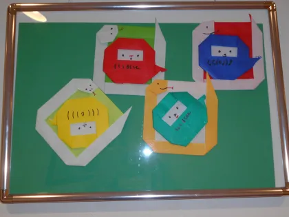 まずは、前回作成した「へびの額縁」に「へびだるま」を貼り付けて