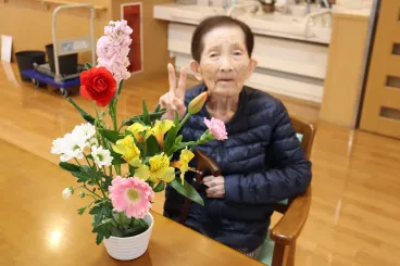 本日は、講師をお呼びしフラワーアレンジメントのレクリエーションを行いました。
