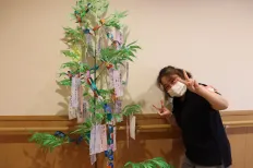 お客様に短冊を書いていただき、とても素敵な笑顔で記念に一枚!