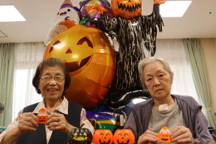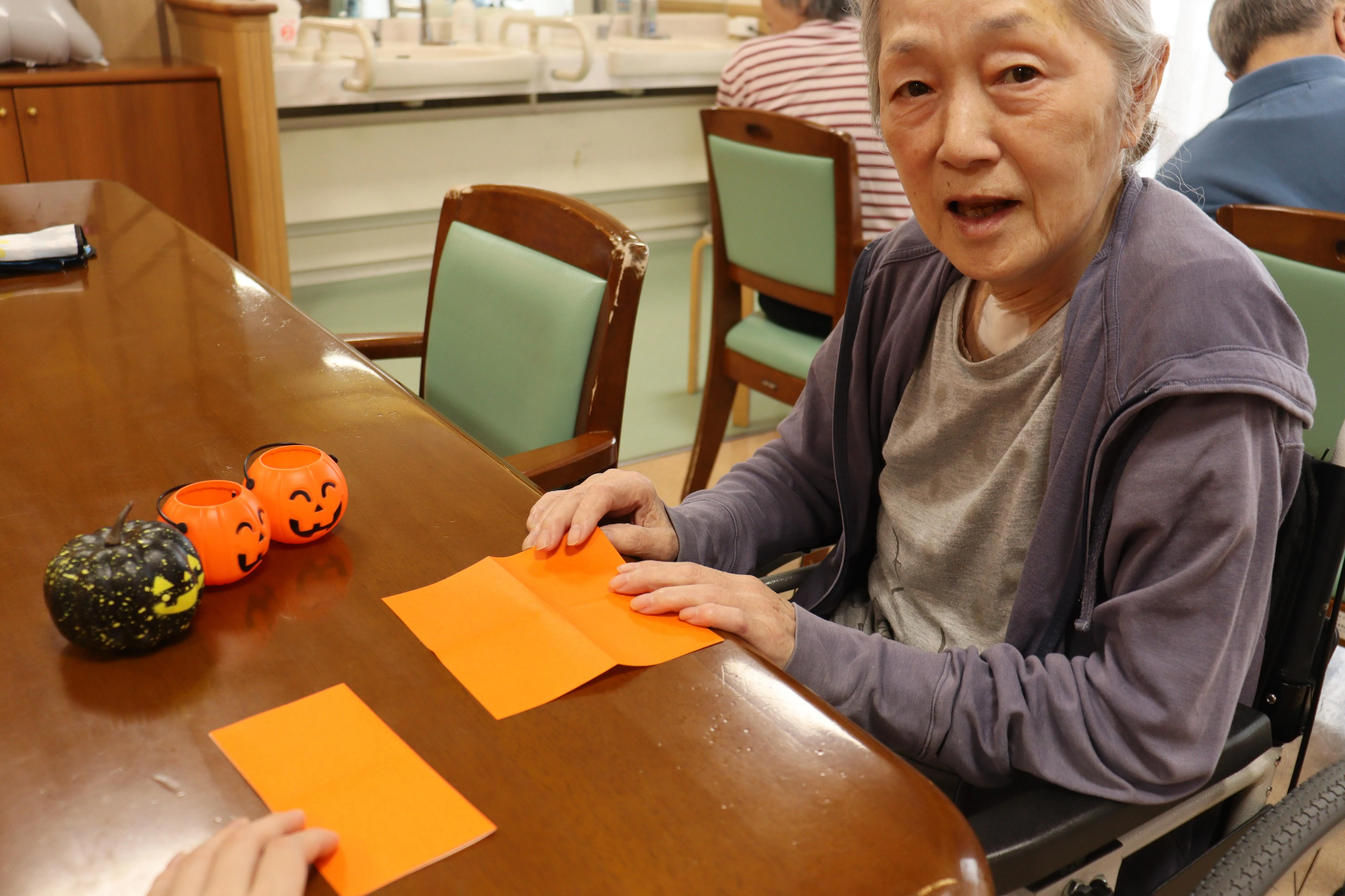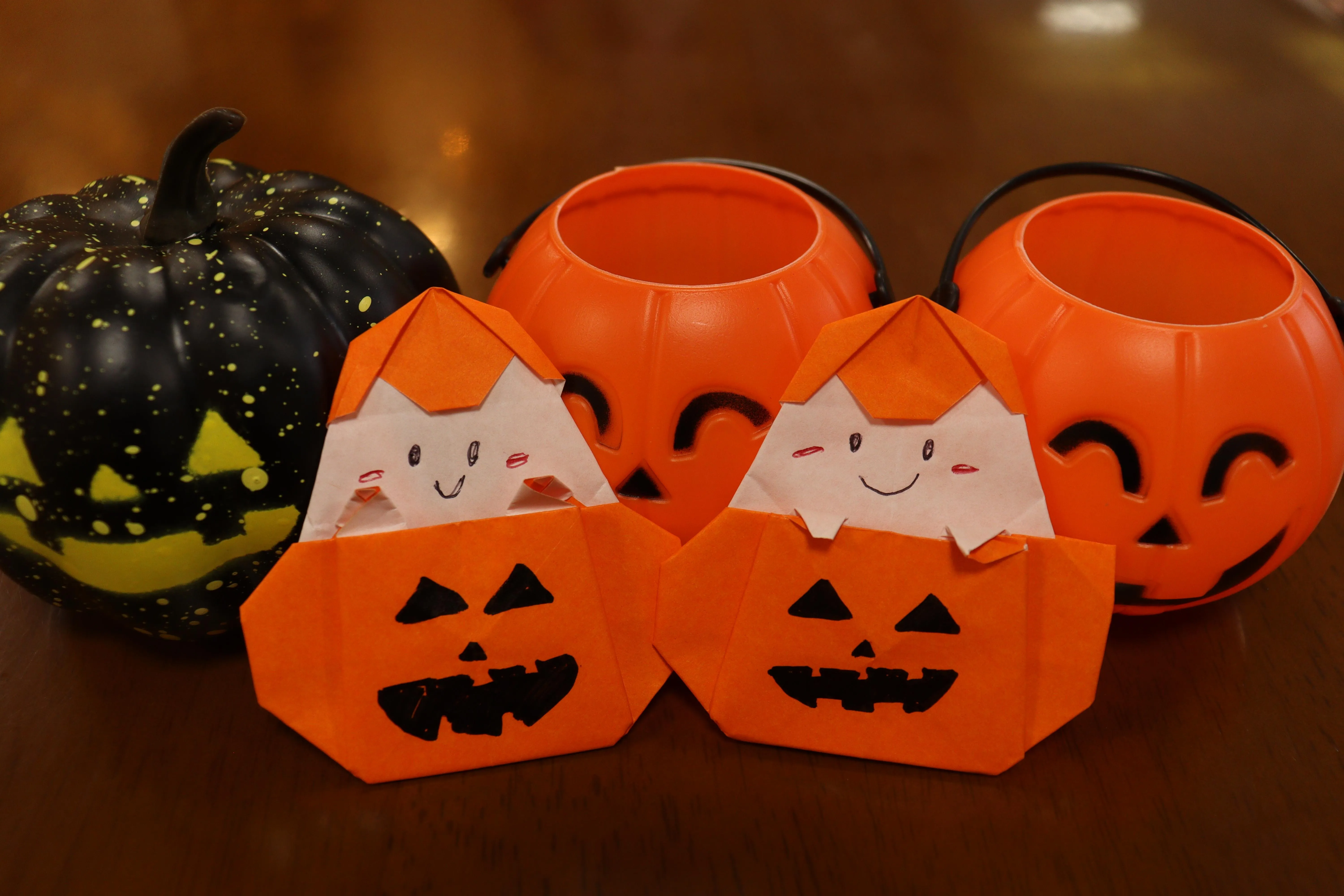 ハロウィンに向けて、折り紙でかぼちゃの飾りを作りました!