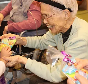 園児さんがやってきました。遠くからトコトコ歩いて来る姿を見ると、とても愛らしいです。「来てくれて、ありがとうね」と小さな手を握ると、照れた表情にうっとりします。