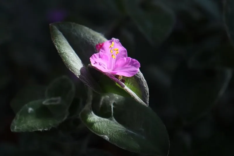 涼しくなって、すぐに咲き始めたトラデスカンティア・シラモンタナ。たくさん咲いていましたが、一輪だけ太陽の光が差していたので撮ってみました。