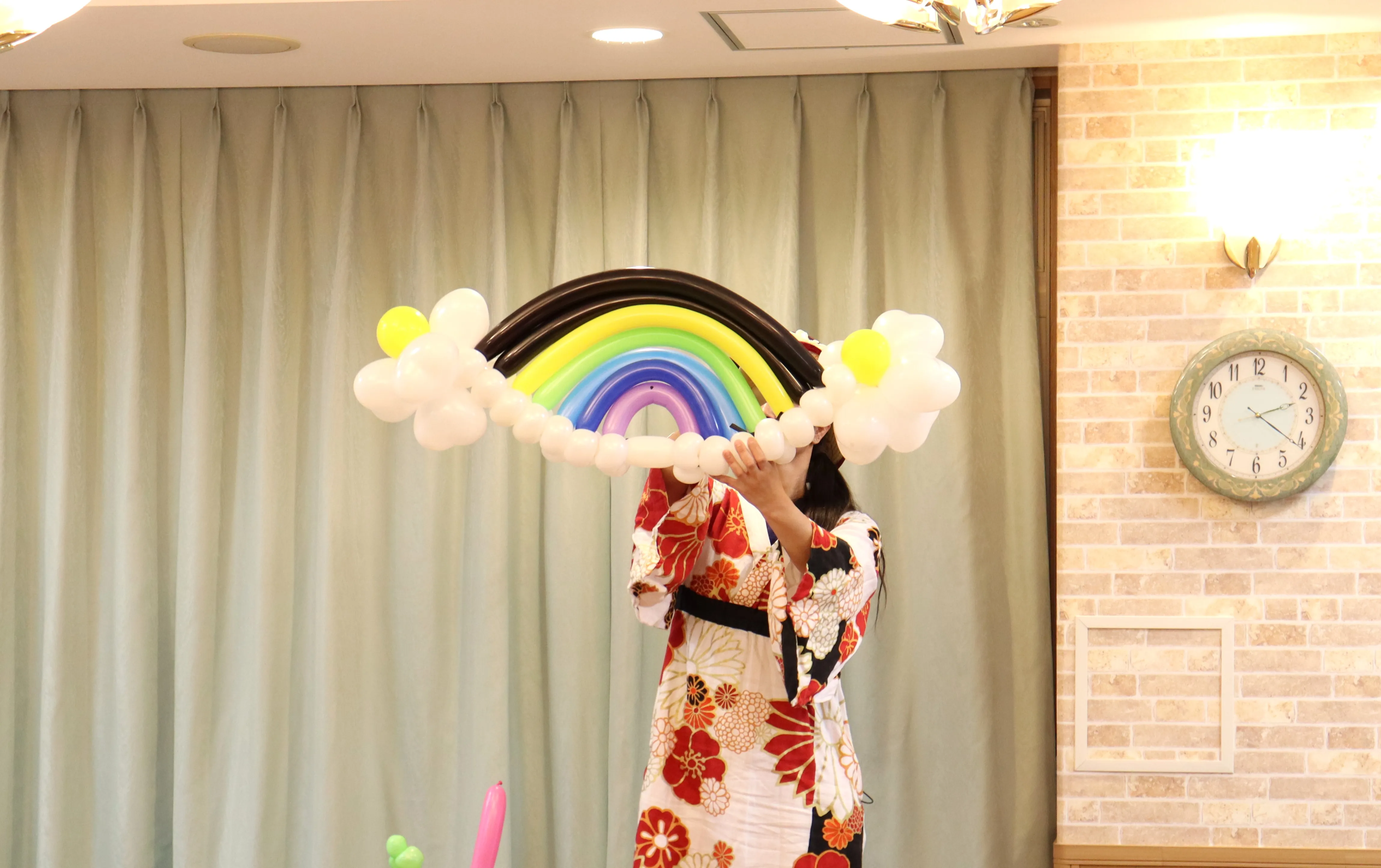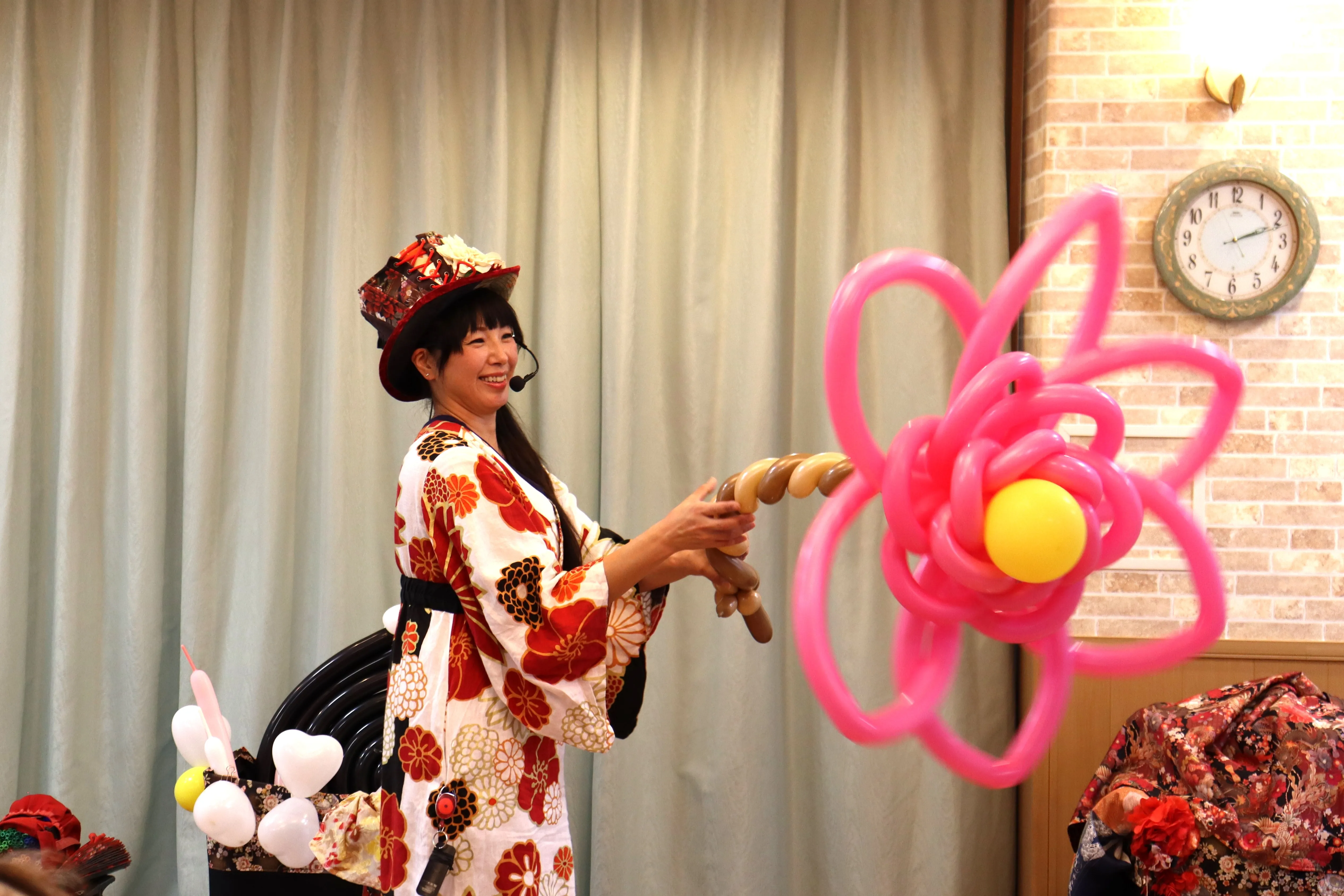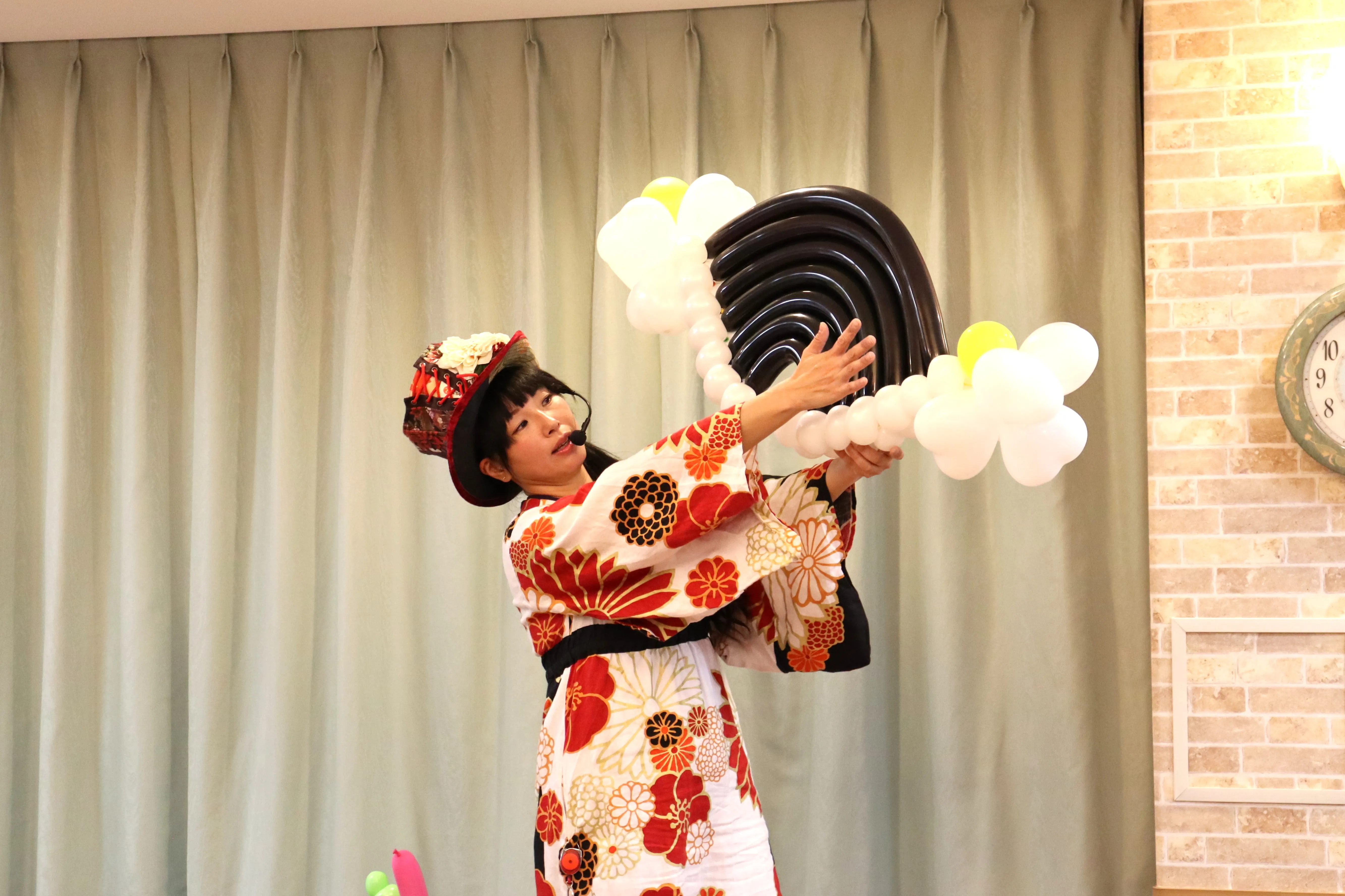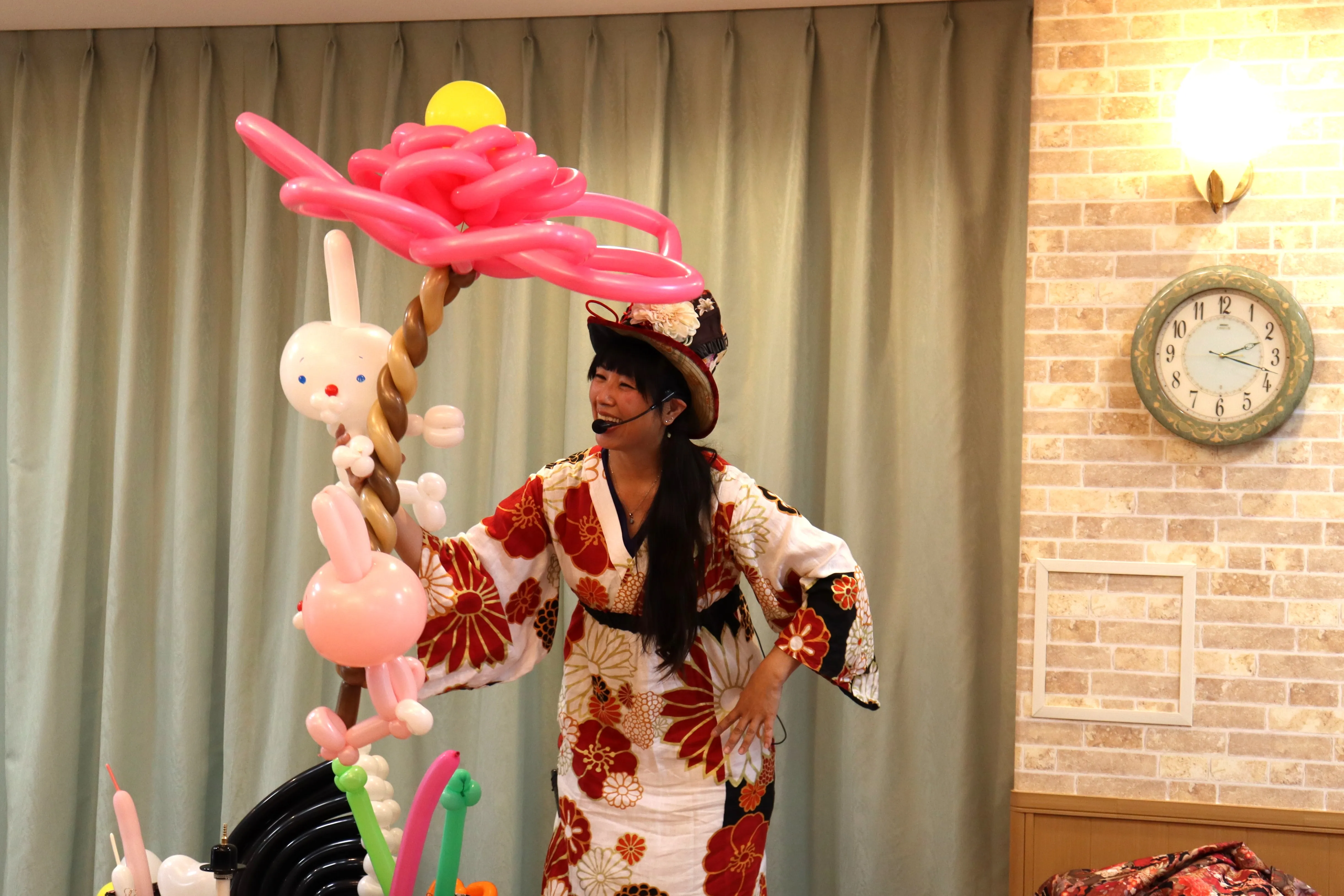 長い風船があっという間に可愛らしいお花や動物に変わっていき、「かわいい!」「すごい!」と、会場のあちこちで笑顔がこぼれていました。