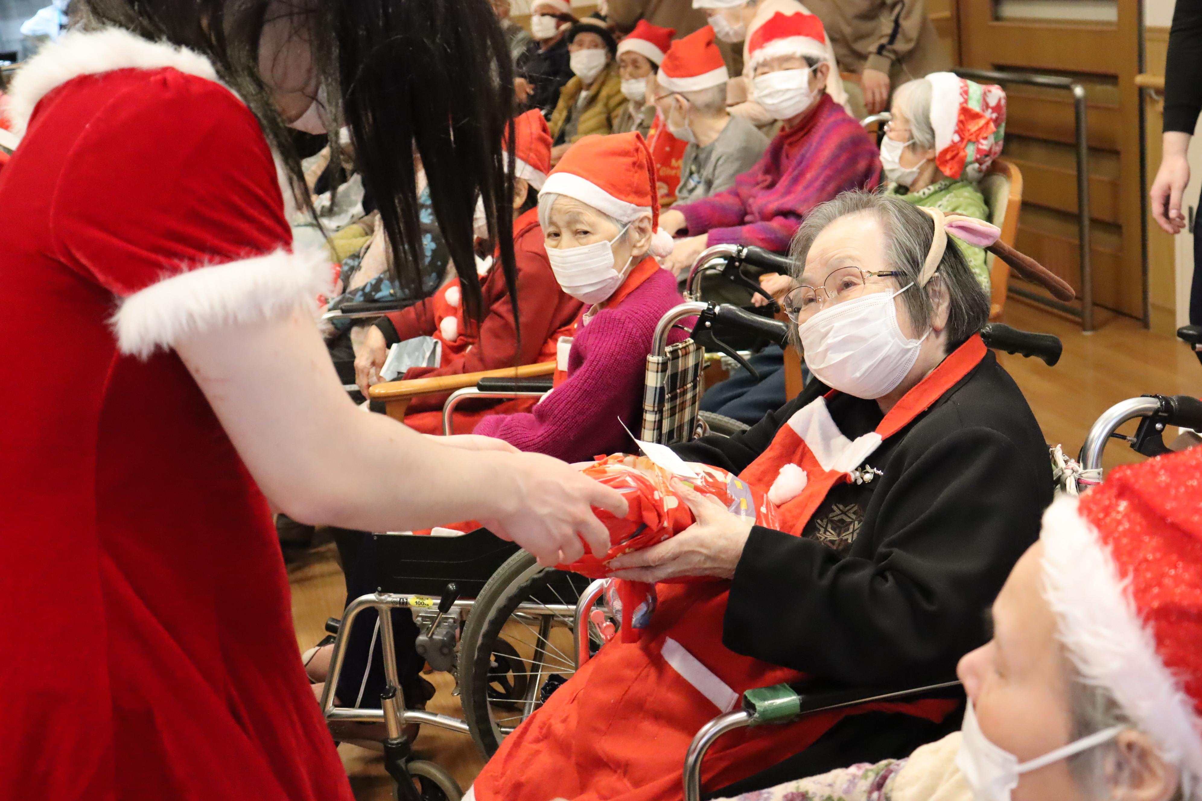 職員は、サンタクロース、トナカイ、スノーマン等に着替えました。