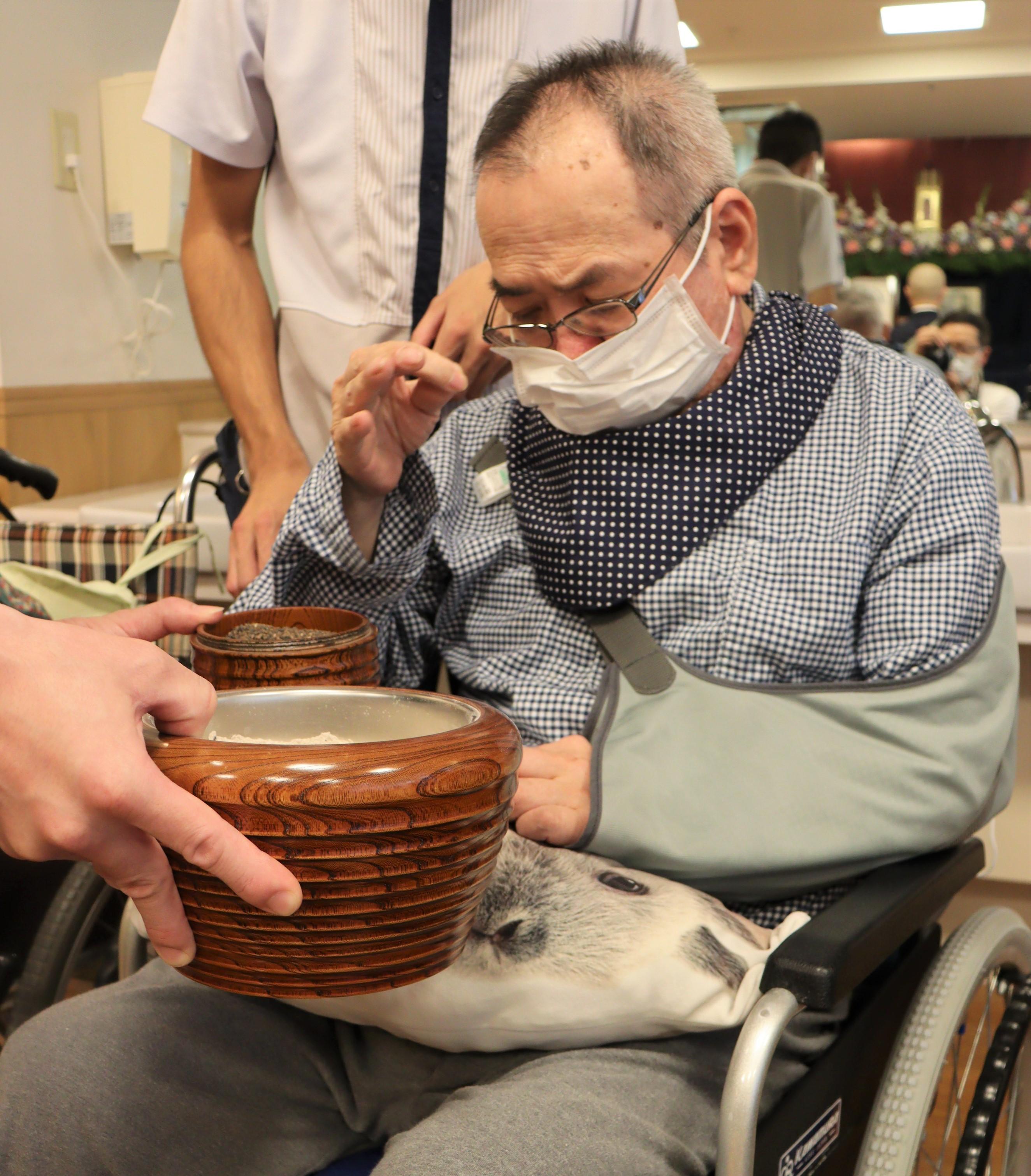 祭壇を設置して位牌、遺影をお供えをして、一人ひとりご焼香を行いました。