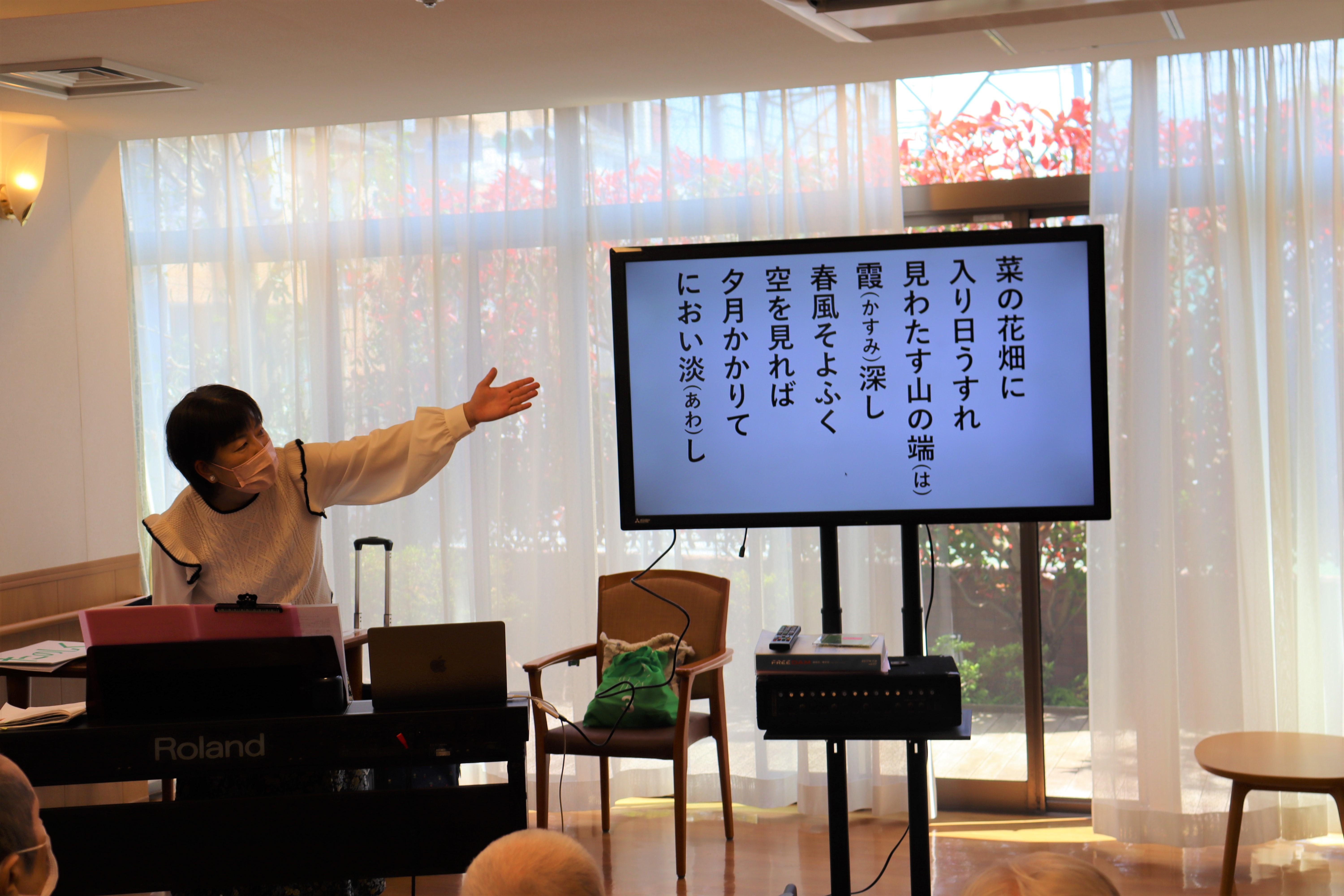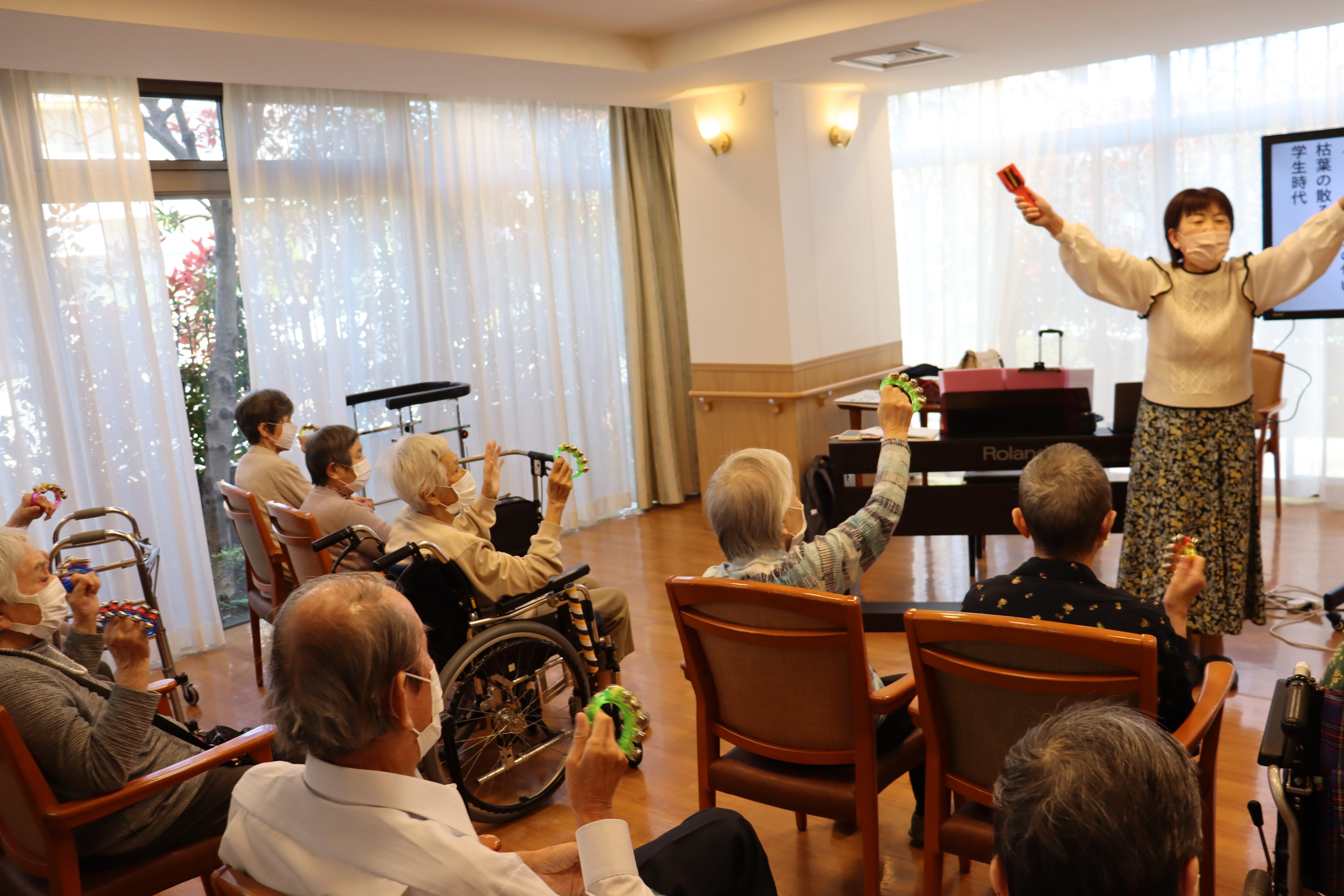 音楽療法の講師の方に来てもらい、歌って!体操して!楽器も鳴らし!講師の先生のお話しも楽しく、耳だけでなく、体と心への心地よい刺激になりました。毎月開催しております。