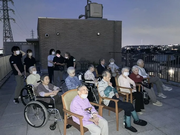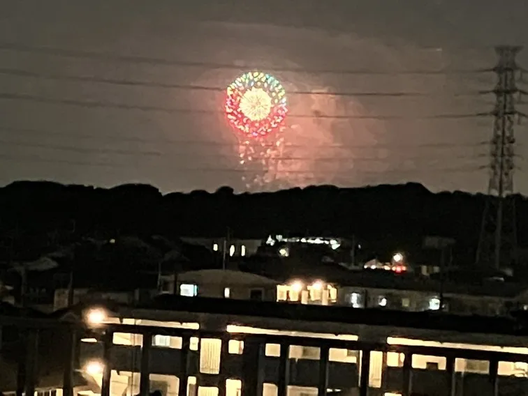 夕食後に屋上で花火を観ました。色鮮やかな花火が、とても綺麗でした。屋上なので風も気持ちよく、皆さまに喜んで頂きました。