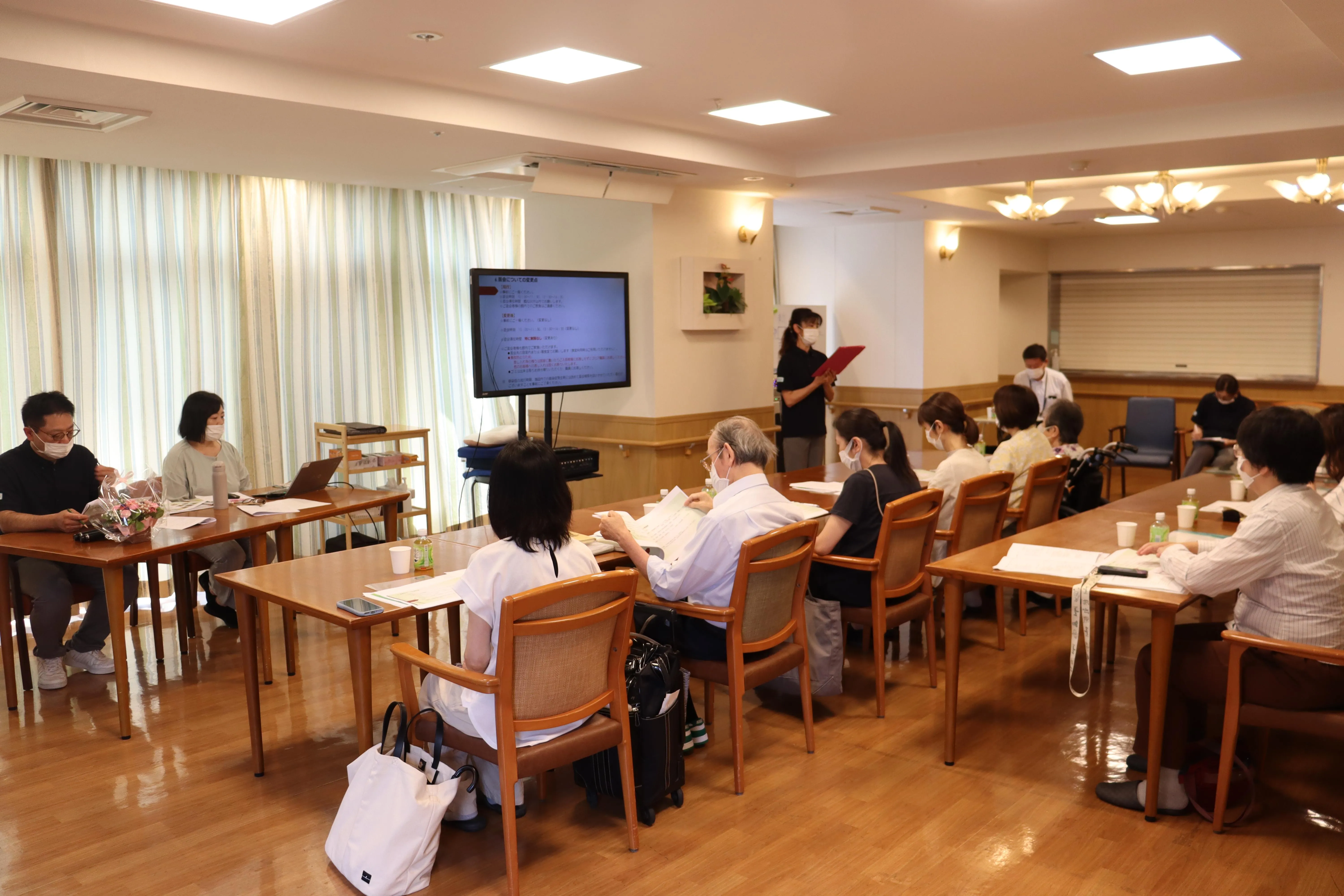 運営懇談会を開催して 財務報告や施設の状況報告、料金改定のご説明、各部署の取り組みをお伝えしました。お客様との日常(行事含め)の写真を15分間の映像にしたものを見て頂きました。改めて映像で振り返ると、あんなこともあった、こんなお楽しみや笑顔があった、と感慨深いものがありました。