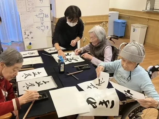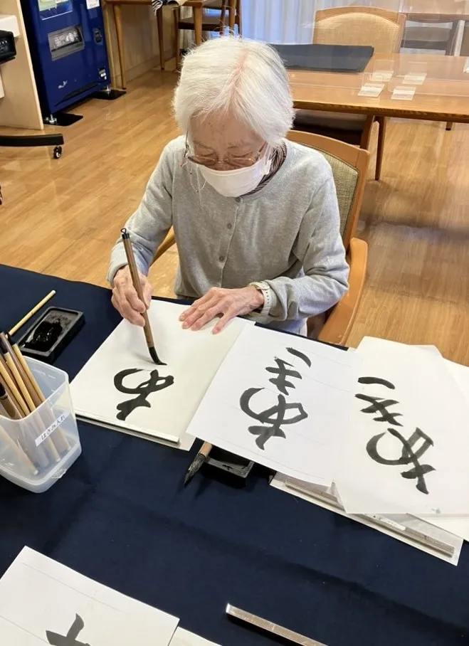 皆様、とても上手にかけています。1階廊下に飾っていますので、お客様のご家族にも見て頂いています。