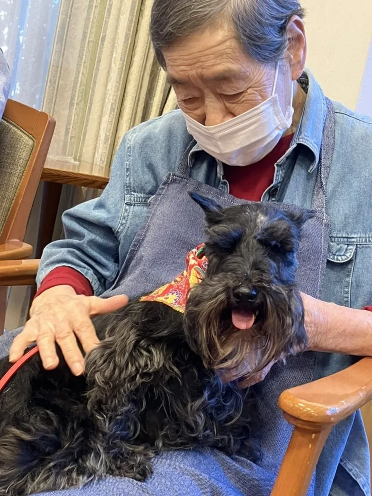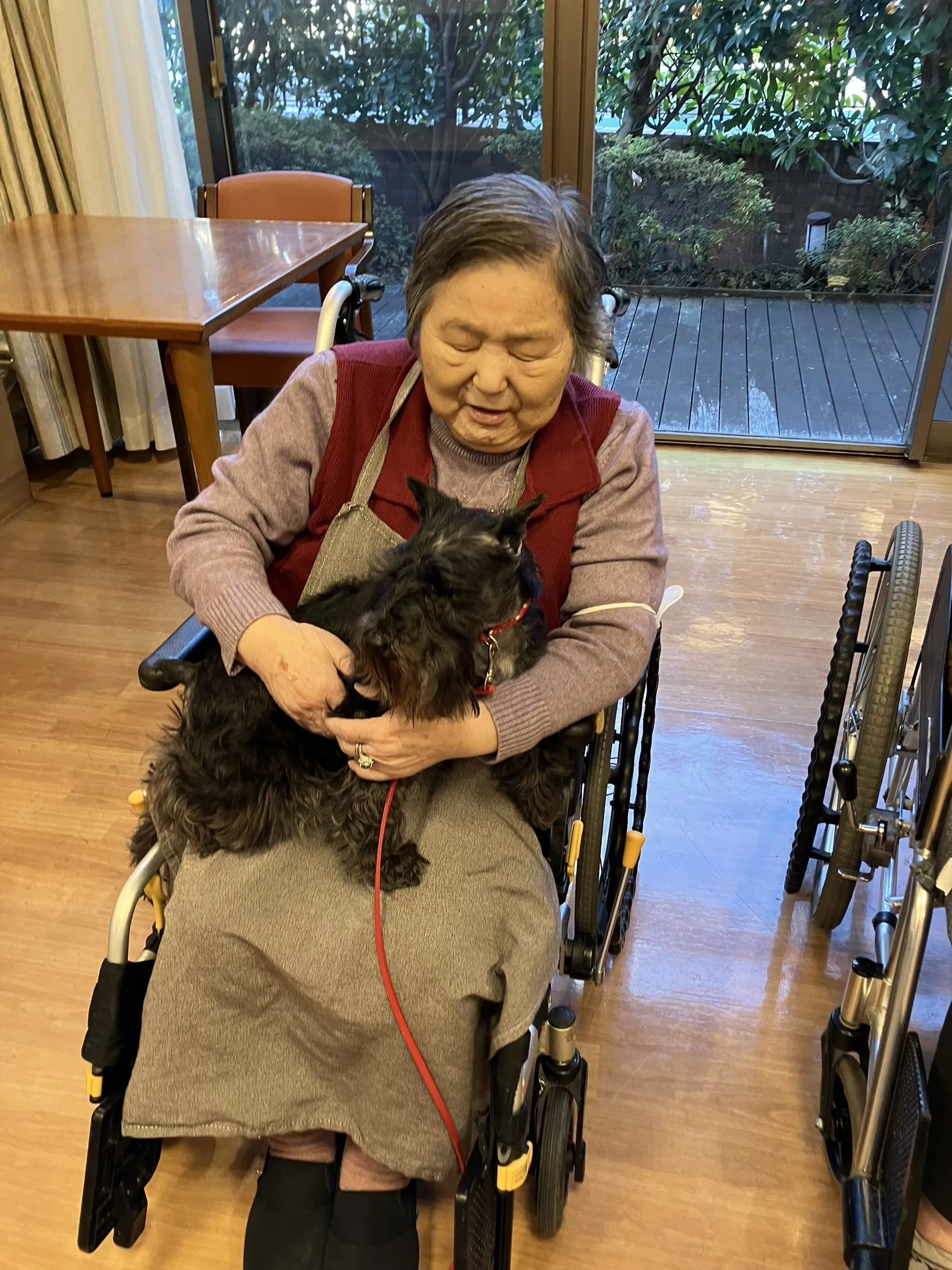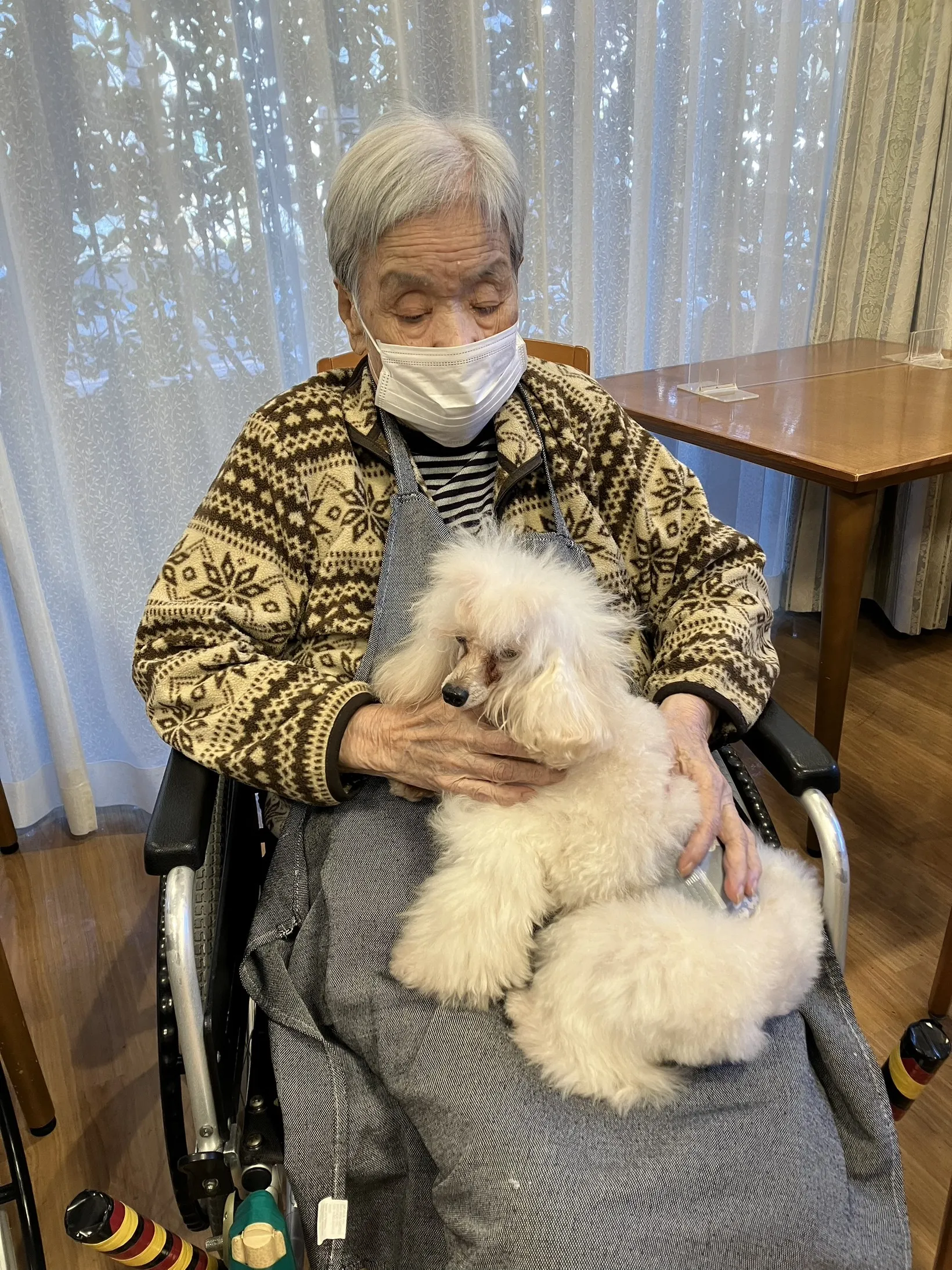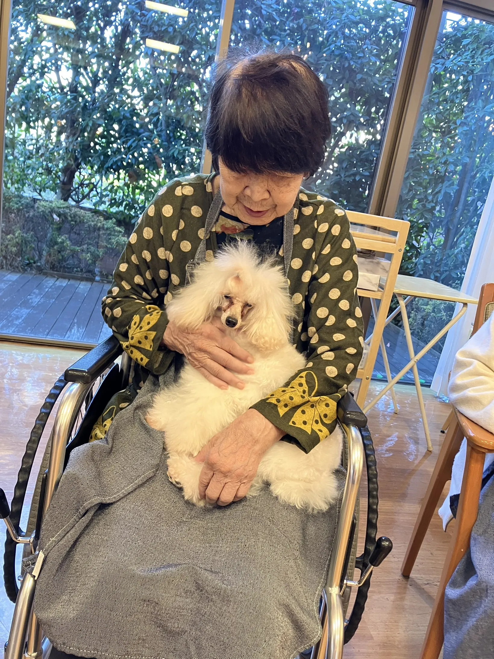 初めてのドックセラピーを開催しました。可愛いワンちゃんを抱きしめて笑顔でお話するお客様、じっと黙って静かになでているお客様。それぞれの反応で、喜んでいただきました。