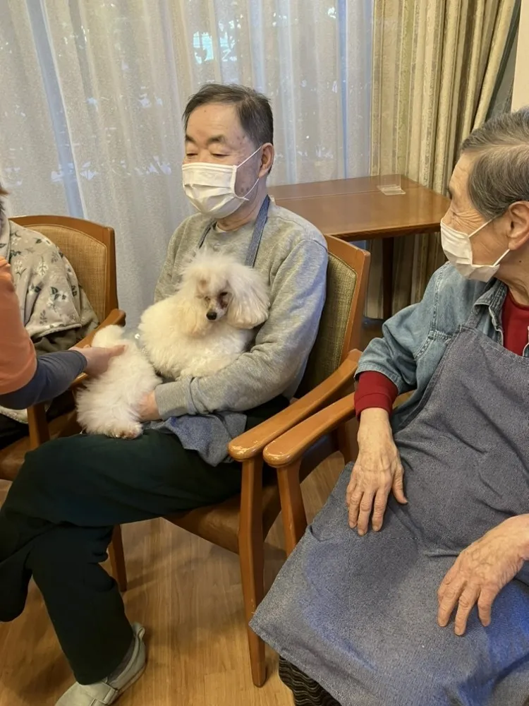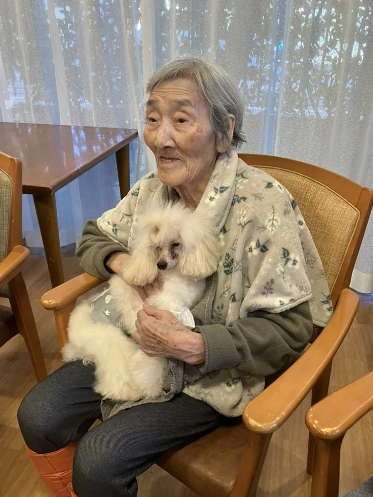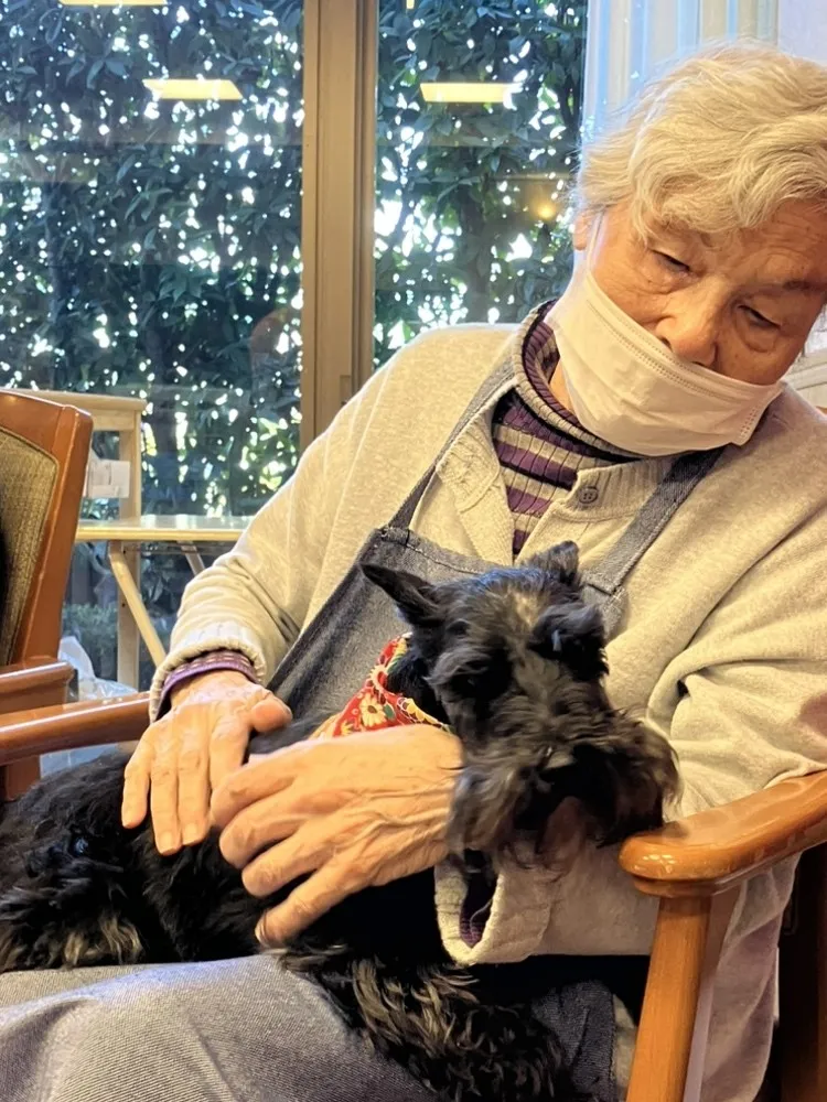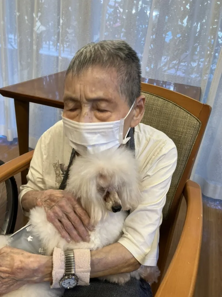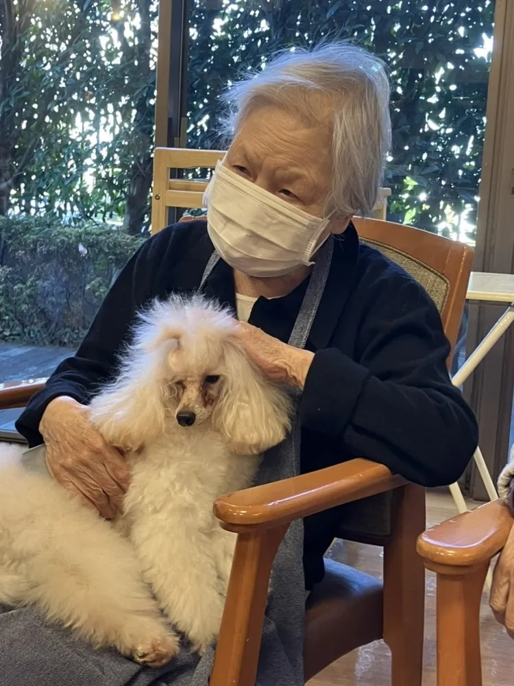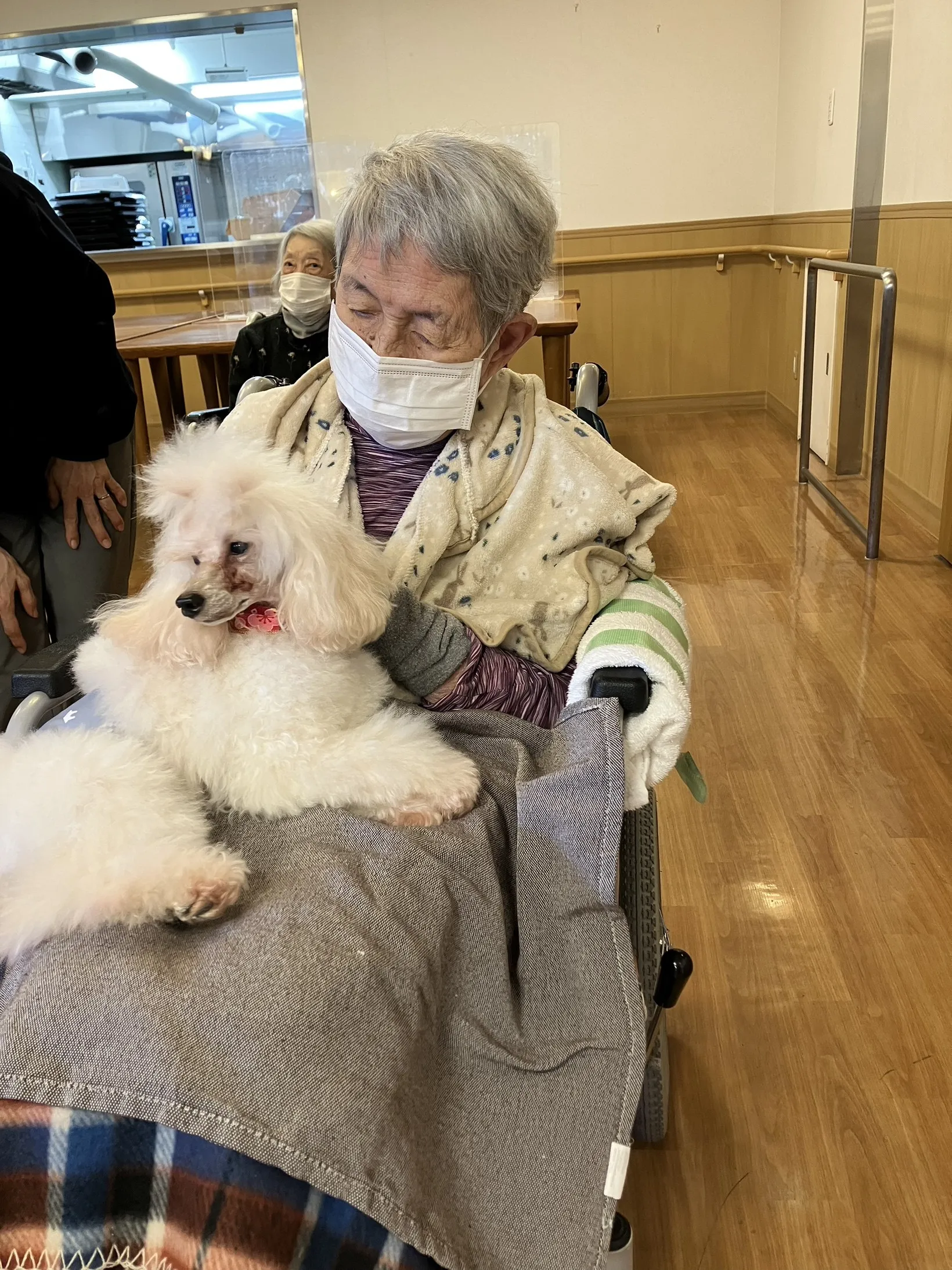 初めてのドックセラピーを開催しました。可愛いワンちゃんを抱きしめて笑顔でお話するお客様、じっと黙って静かになでているお客様。それぞれの反応で、喜んでいただきました。