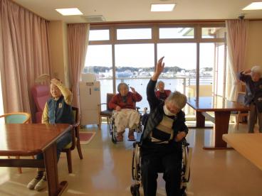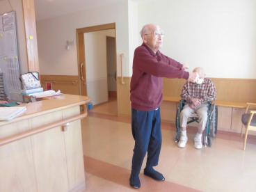 お客様が率先して、体操に励んでくださるので、職員は失敗しないようにヒヤヒヤ…