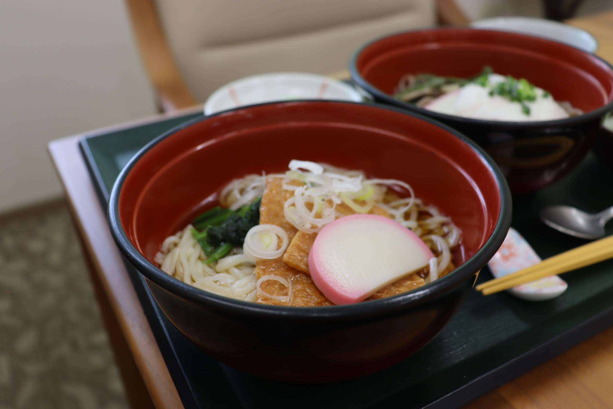 お客様には、冷やしきつねうどん・冷やし山菜とろろそばのどちらかを選んで頂きました。