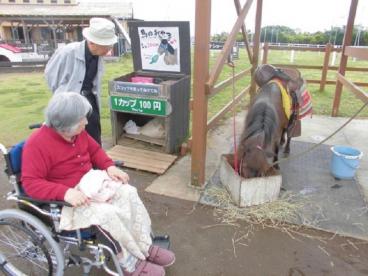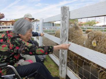 今日は春のお出かけレクリエーションで、横須賀市の「長井海の手公園 ソレイユの丘」に出かけました。かわいらしい幼稚園児達もたくさん訪れている中、私たちが向かった先は「動物ふれあい広場」。