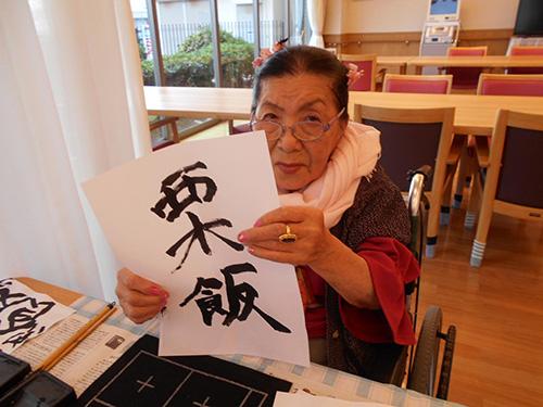 本日は書道の日でした。「収穫・栗飯・稲刈」を書きました。「この時期は美味しい食べ物がたくさん採れる時期だから、何か採りに行って食べたいわね」と話されていました。