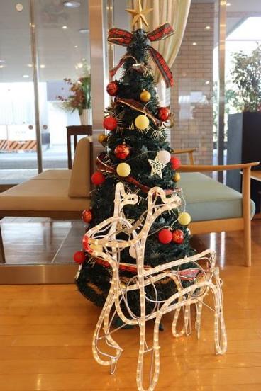 このツクイ・サンシャイン三浦にも冬がやってきました。若いスタッフ二人によるクリスマスの準備が終わりました。トナカイとミニツリーは玄関でお客様をお出迎え、食堂にはシャンパンゴールド色のモニュメントに彩られた高さ2.1mのツリーにお客様もスタッフも楽しんでおられます。こちらにお越しの際は是非ご覧ください。