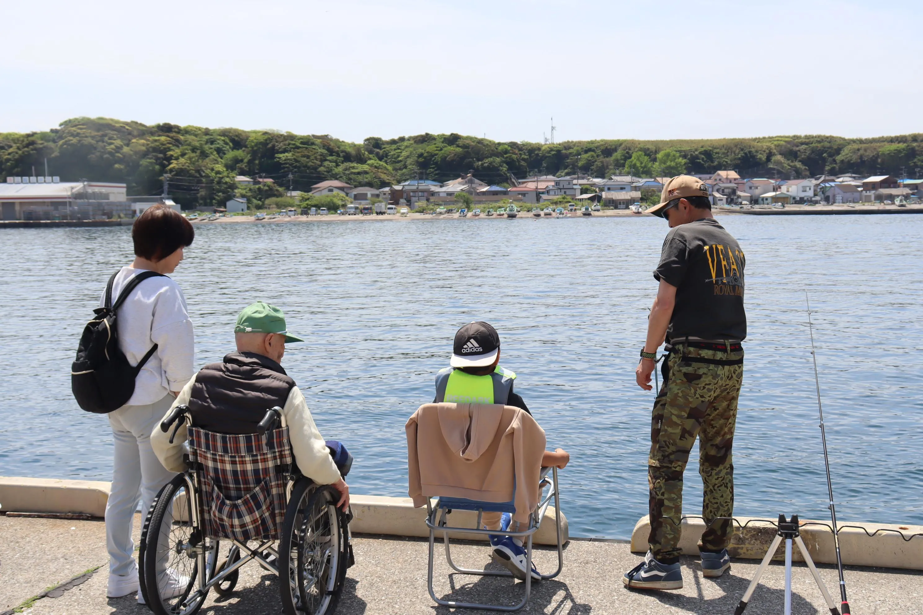 施設の目の前の海で、ご家族と並んで釣り楽しんでおられるお客様。波の音と、時折聞こえる笑い声。魚が釣れても、釣れなくても、そこには自然と笑顔が生まれます。ここは「住まう場所」であると同時に、ご家族の思い出が増えていく場所でもあります。