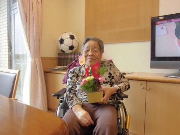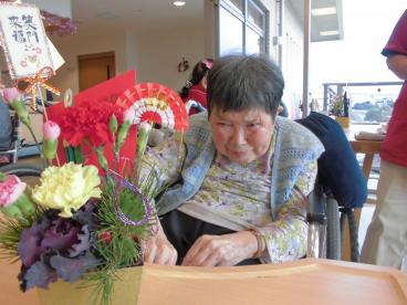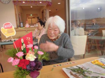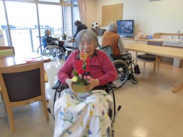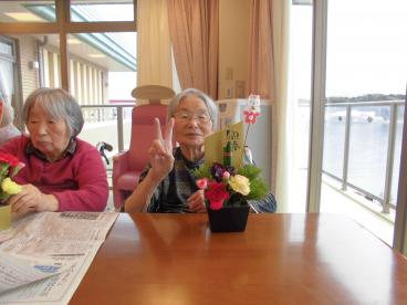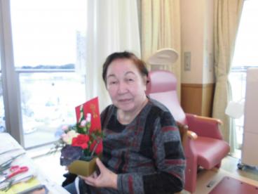 本日は、職員と一緒にフラワーアレンジメントを作りました。