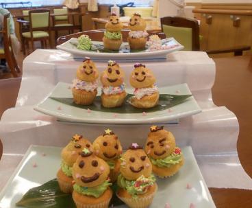 2月の終わりでお雛様には少し早かったのですが、お雛様のカップケーキを作って頂き、おやつに召し上がって頂きました。