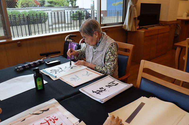 8月最初の書道クラブです。お手本も、8月のものに変更しました。