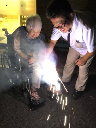 手持ち花火、線香花火、吹き出し花火を行いましたが、「花火なんてやった事ないよ」というお客様が多くいらっしゃいました。