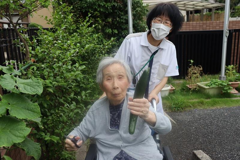4月に植えたしし唐や、なす、きゅうりが育ってきたのでお客様と一緒に収穫しました。しし唐となすは天ぷらに、きゅうりはぬか漬けにしました!