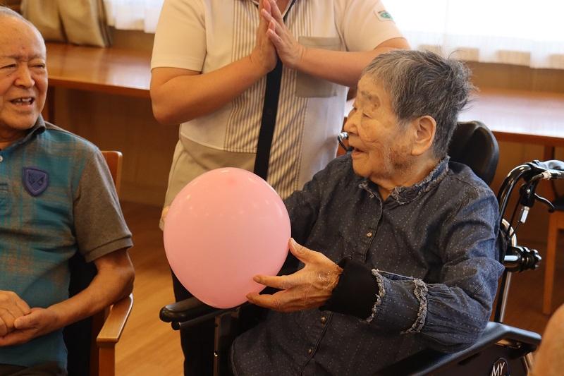 今月2回目の風船バレーです。笑い声や、数を数える声で、とても賑やかでした。何回続くか皆さんで挑戦しました。本日は74回でした。次は100回を目指します。