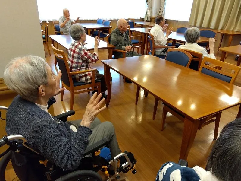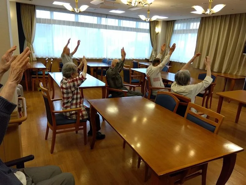 毎日15分間体操を行っています。皆さん積極的に参加いただいていて、日課になっています。体の動かし方もスムーズになっているご様子です。健康長寿を目指して、今日も頑張っています。