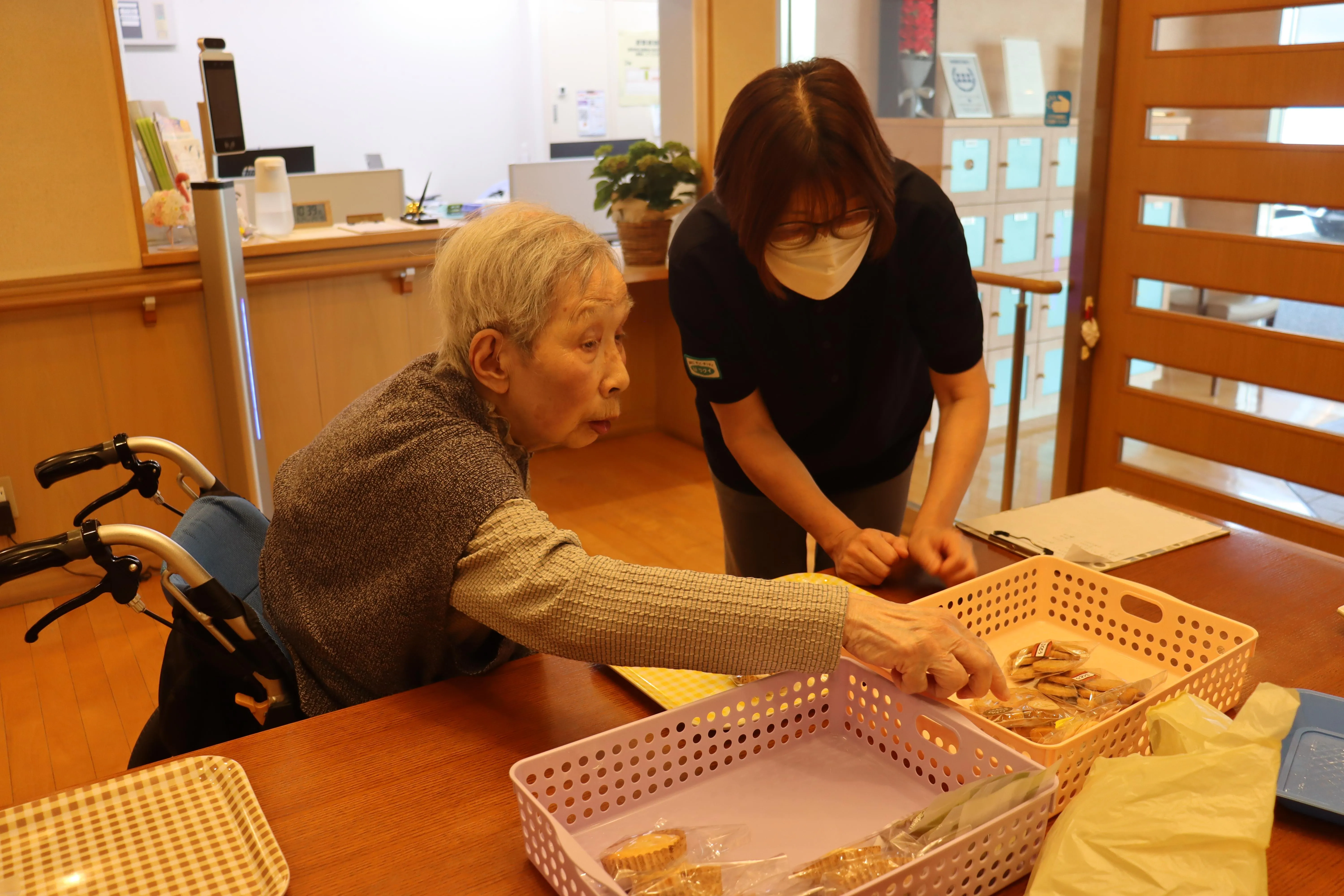 今月も、月に一度の洋菓子の訪問販売の日がやってきました!なかなかお買い物に行ける機会も少ないので、皆さんお菓子を選ぶのを楽しみにされています。購入されたお菓子は、おやつの時間に美味しく召し上がっていました。