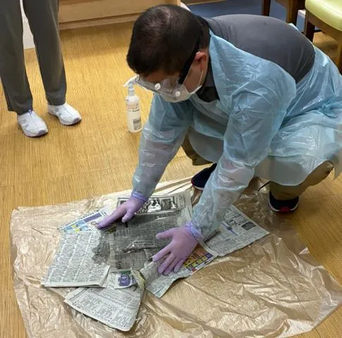 感染症が流行する季節が近づいてきました。そこでスタッフを対象に、正しい手洗いや手指消毒、嘔吐物の処理方法について研修を実施しました。定期的な研修を行い、お客様が安心して過ごせる環境づくりに全力を尽くしてまいります。