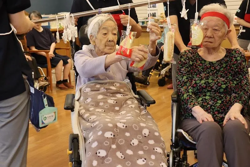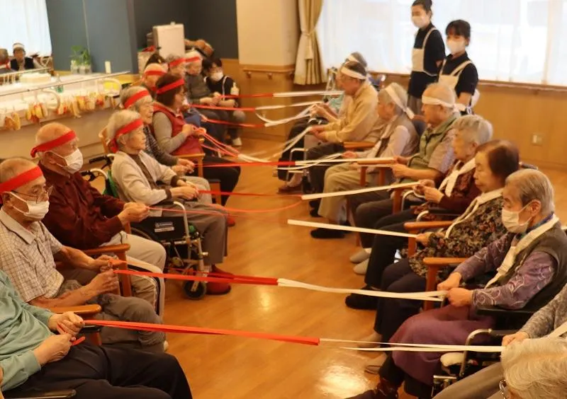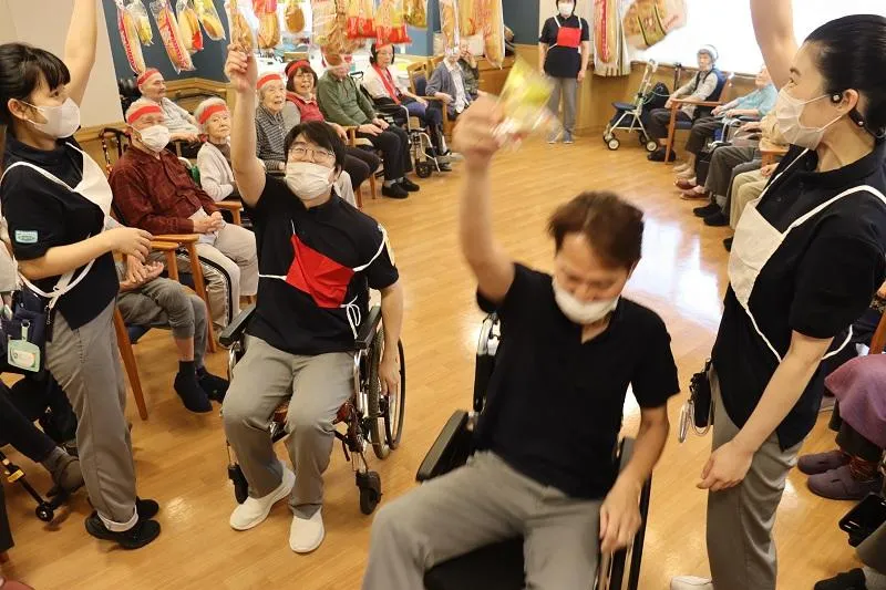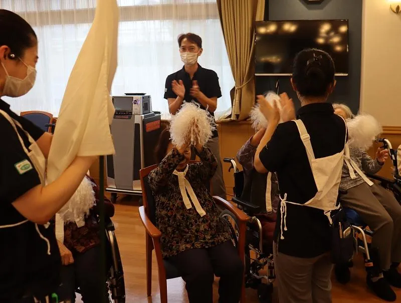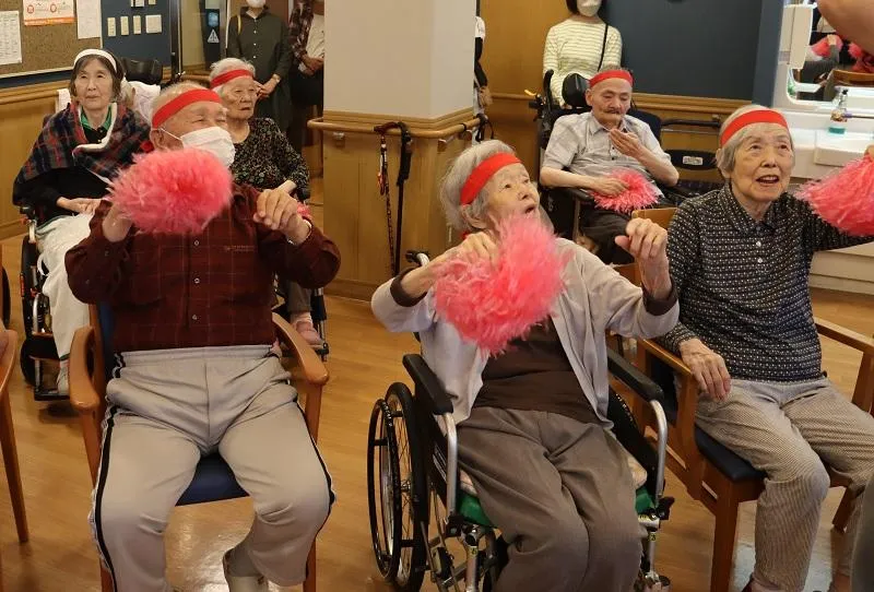 紅組、白組とも、スタッフの掛け声に合わせて、元気にポンポンを振ってくださいました。