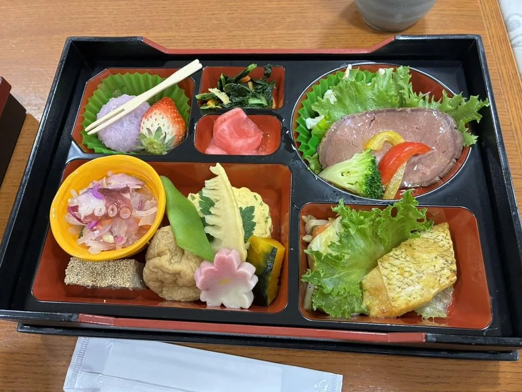 先月から始まったランチ会。今月は八百彦さんの和食弁当です。「量もちょうど良いし美味しいね」