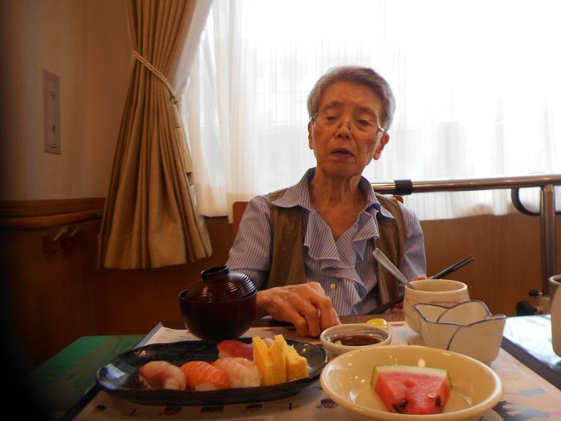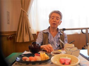 お客様の注文を聞き、調理の職員と栄養士がお寿司を握りました。