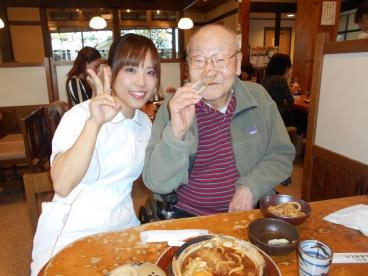 味噌煮込みうどんの麺は硬めですが、お店の方にお願いをし、特別に食べやすいように柔らかく仕上げていただいています。