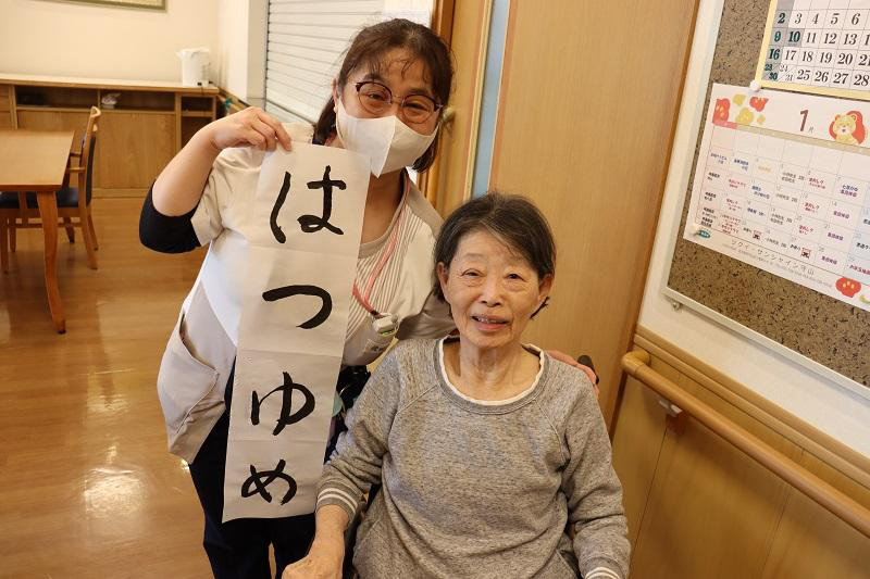 年明け初めての書道クラブなので、書初めを行いました。「長い半紙は、慣れないので書きづらいわ」と言われる方が多かったですが、「でも楽しかった」とお話しされていました。