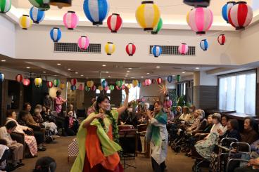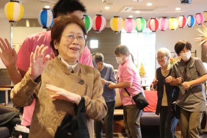 皆さま、おなじみ炭坑節を輪になって踊ります。