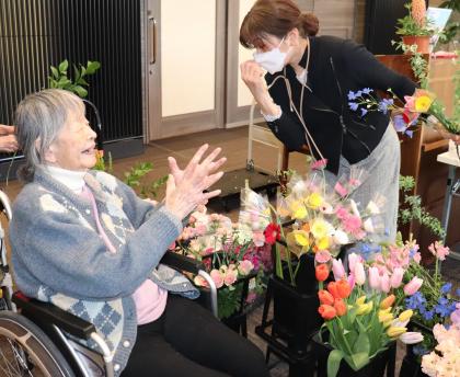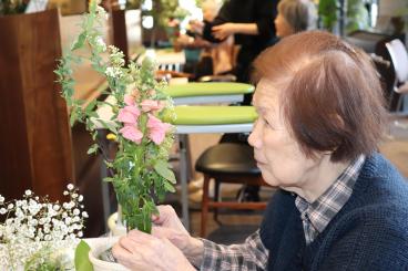 今月もお花屋さんがツクイ・サンシャイン西馬込にきてくださり、好きなお花でフラワーアレンジメントを楽しみました。