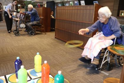 そのようなイメージを疑似体験しようというイベントを行いました。縁日で楽しむ射的や輪投げ、金魚すくいを模擬店風で設置。皆様には、真剣に楽しんでいただきました。